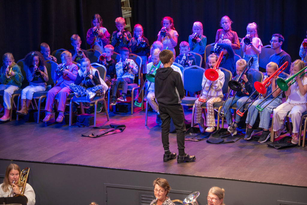 Toch werd de toon van de avond onmiskenbaar gezet door de leerlingen van groep 5 en 6. Wat een energie, wat een muzikaliteit! Onder hen zelfs een jonge dirigent in spe, die met overtuiging het gezamenlijke slotnummer leidde samen met het grote orkest.